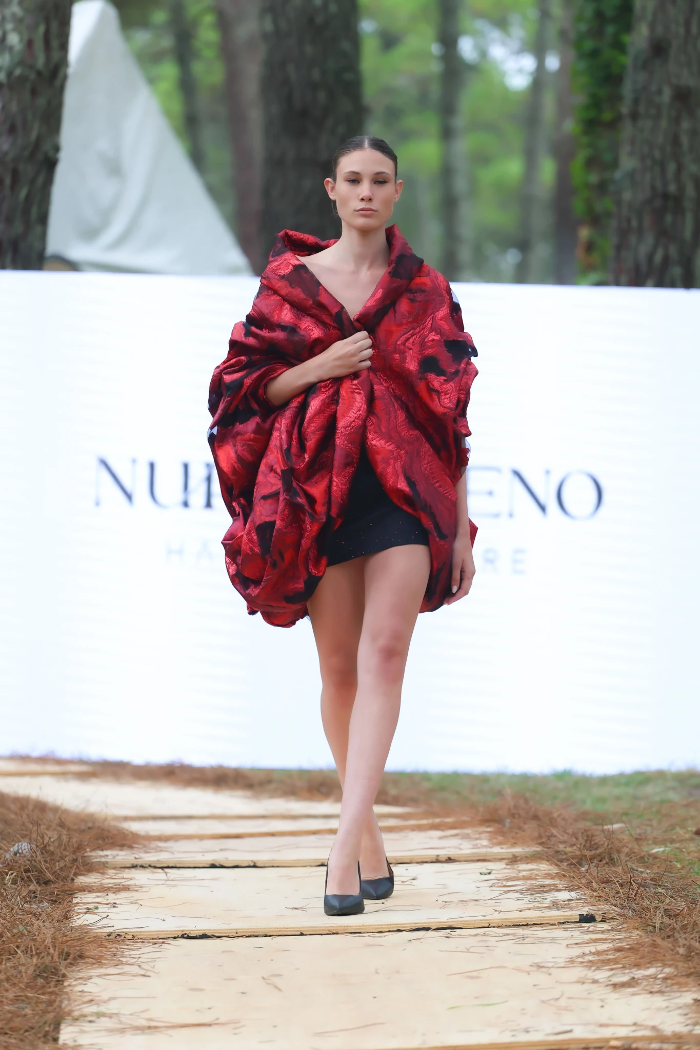 Nuria Bueno: alta costura en clave de silencio Por su parte, Nuria Bueno presentó ARLES – La forma silenciosa, una colección de alta costura que propone una verdadera arquitectura del silencio.