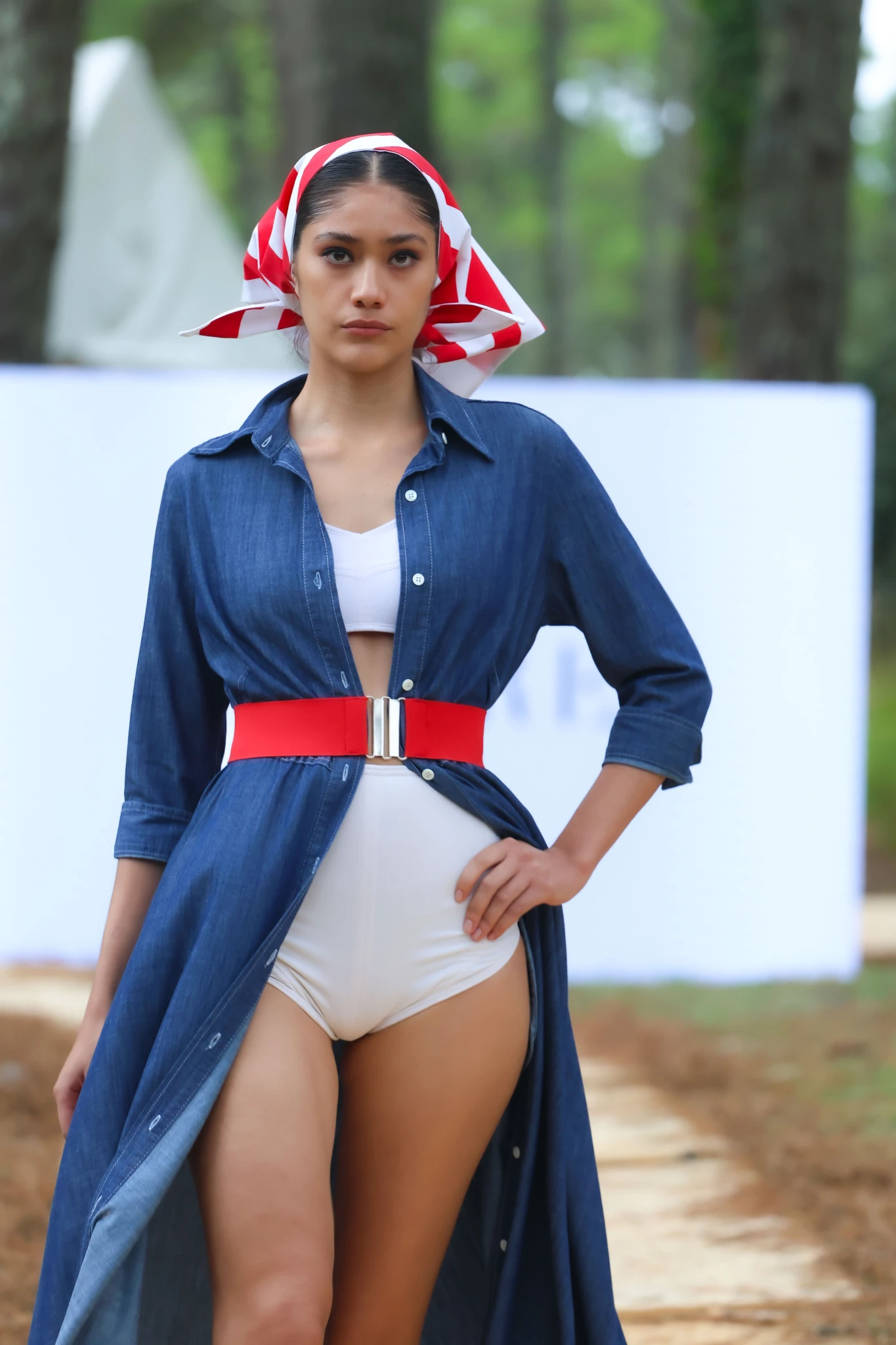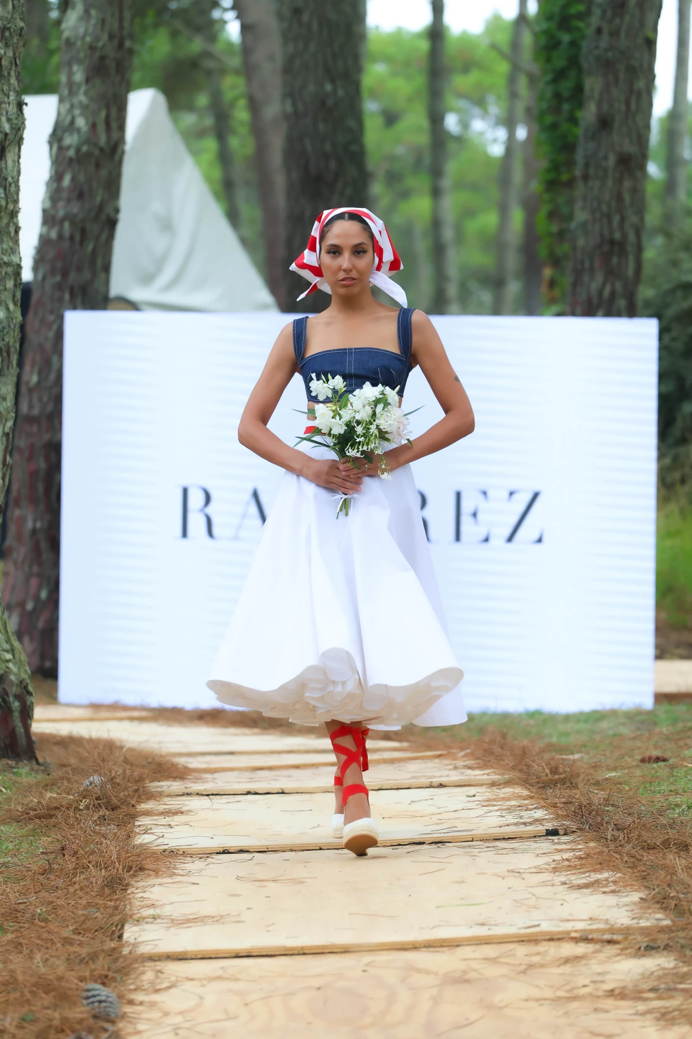 La colección se despliega desde una narrativa fresca, de renovación e inspiración, con una paleta cromática esencial compuesta por azul, blanco y rojo, colores que definen la identidad visual de la temporada. El azul se expresa a través de un denim camisero desarrollado por Vicunha para la línea RAMÍREZ DENIM, presente en vestidos, soleras, faldas, pantalones y chemises.